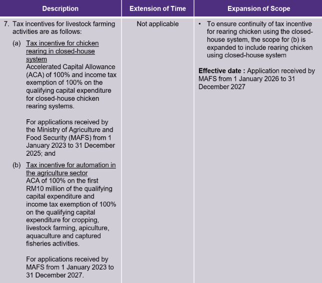 The above incentives are for application received by Ministry of Agriculture and Food Security (MAFS) from 1 January 2023 to 31 December 2025.