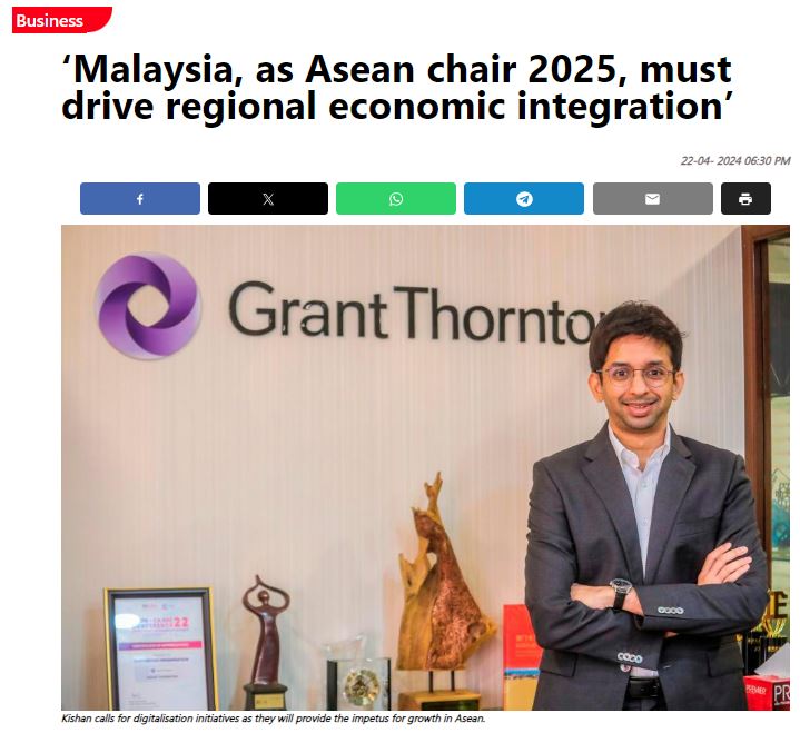 Grant Thornton Malaysia's CEO, Mr Kishan Jasani emphasizes Malaysia's pivotal role as ASEAN chair in 2025, driving regional innovation and digitalization for economic integration in this article with The SunDaily.