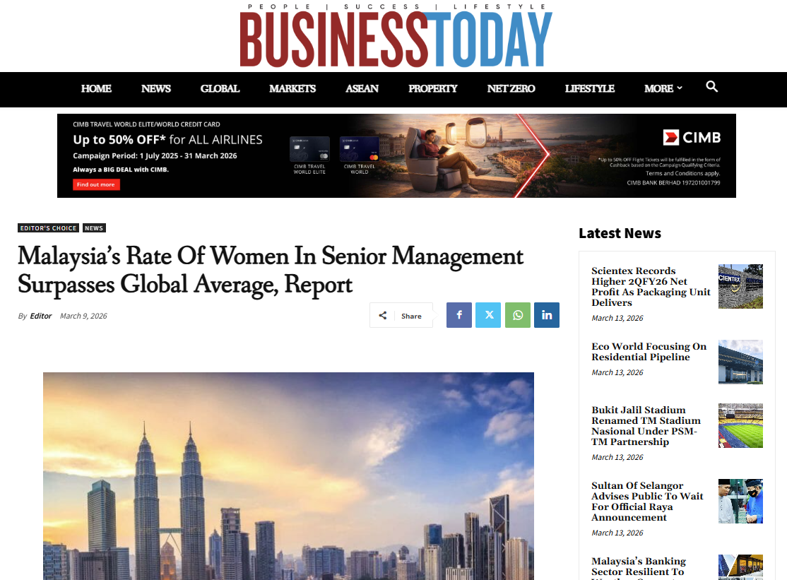 At the same time, the number of Malaysian businesses with no women in senior management has more than halved, falling to 4.5% in 2026 from 9.3% in 2025.